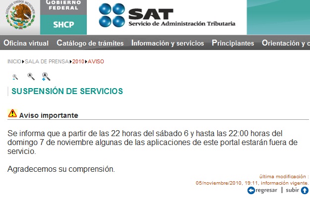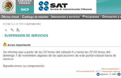 El SAT ha dado a conocer que durante este fin de semana estará suspendidas algunas aplicaciones