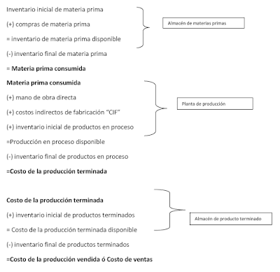 PEPS: El flujo fisico real es irrelevante, lo importante es que el flujo de costos supone que los primeros articulos en entrar al inventario son los primeros en ser vendidos (costo de ventas) o consumidos (costo de produccion). El inventario final esta formado por los ultimos articulos que entraron a formar parte de los inventarios.