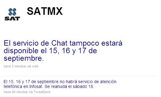 El servicio de administración tributaria dio a conocer a través de su cuenta de twitter la suspención de sus servicios por los festejos del bicentenario.