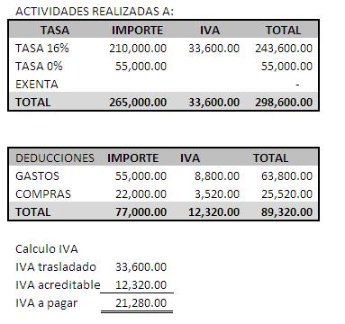 Realizacion de actividades gravadas (tasa general 16% y 0%)