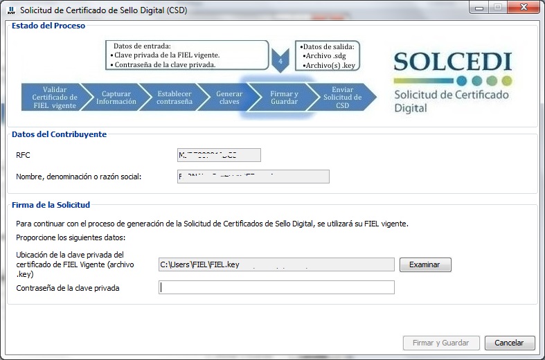Una vez concluido nos solicitara la llave de nuestra firma electrónica asi como su contraseña y al hacer esto nos solicitara dar clic en “firmar y guardar”