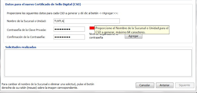 Y nos pedirá la contraseña que tendrá el CSD y damos agregar