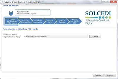 Primeramente lo que tenemos que hacer es abrir la aplicación SOLCEDI la cual la bajamos de aqui (click) ya abierto seleccionamos “Solicitud de Certificados de Sello Digital (CSD)
